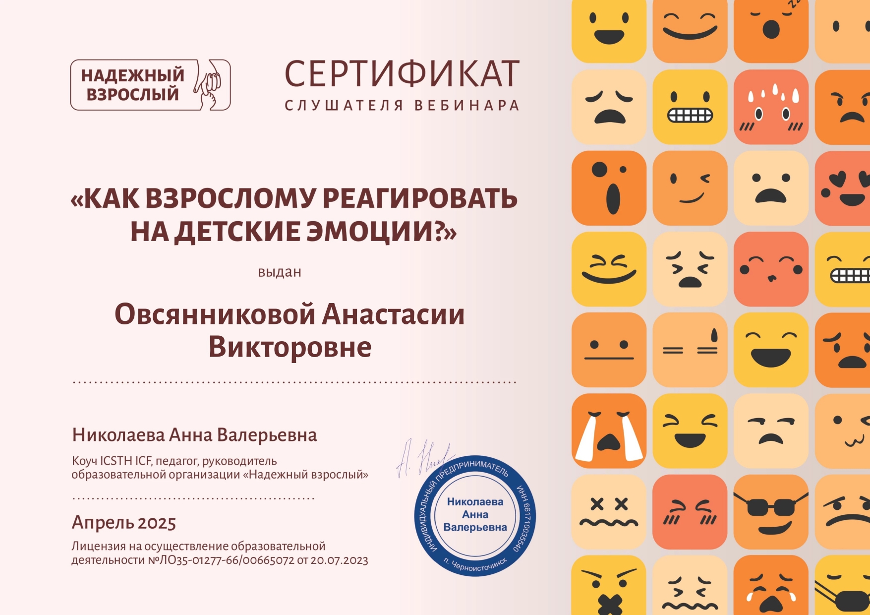 Вебинар "Как взрослому реагировать на детские эмоции?"